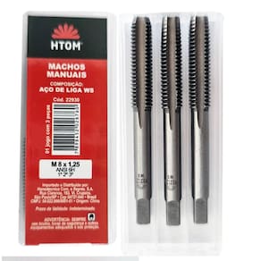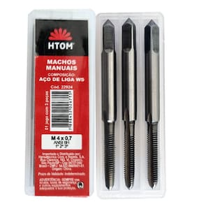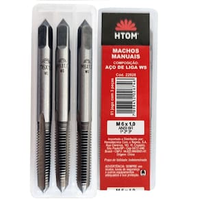 Jogo macho manual m4 m6 m8 m10 aço liga ws 12 peças htom Kit com 3 jogos de macho manual aço liga ws perfil completo 1, 2 e 3 macho nas medidas m4 x 0,07mm / m6 x 1mm e m8 x 1,25mm htom. - marca: htom - material: aço liga ws - 1 kit de macho rosca métrica: m4 x 0,07mm - 1 kit de macho rosca métrica: m6 x 1mm - 1 kit de macho rosca métrica: m8 x 1,25mm - jogo completo com 3 peças 1, 2 e 3 macho - esta ferramenta é utilizada para fazer roscas internas e materiais de aço com baixo teor de carbono e outros mais leve - sua estrutura é retificada e sua rosca afiada, tornando as ferramentas mais durável e uma rosca limpa e perfeita - norma ansi m din 13 iso 724/965.1 - indicado para uso manual em materiais ferrosos e não ferrosos - perfil completo - composição: aço de liga ws - recomenda-se usar fluído/óleo de corte para lubrificação e resfriamento, isso aumenta a vida útil da ferramenta. - : 90 dias Obs: o pacote inclui 3 jogos de macho completo com 1º,2º e 3º macho Ean: 7791604460422