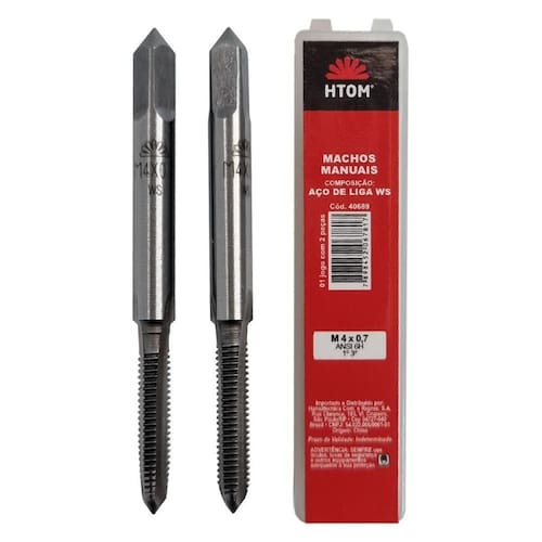 Jogo macho manual aço liga ws com 2 peças 1 e 3 macho htom. Indicado para realizar roscas em materiais ferrosos e não ferrosos.