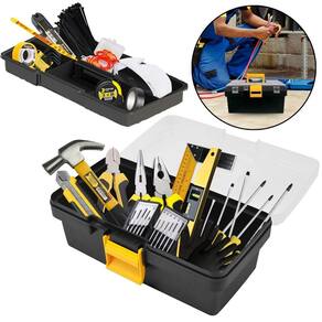 01 caixa maleta de ferramentas preta com bandeja organizadora removível