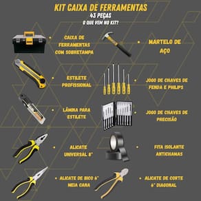 Tenha sempre à mão tudo o que precisa para reparos, montagens e manutenções com o kit jogo de ferramentas e epi profissional 43 peças. Um conjunto completo que garante praticidade e segurança tanto no uso doméstico quanto em trabalhos profissionais.