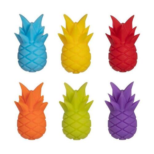 O Jogo de Marcador de Taças Ananas tem 6 peças, produzidas em silicone, que podem ser colocado na borda de copos ou de taças. Ideal para diferenciar e evitar trocas de bebidas ao receber os amigos em casa e criar um aspecto divertido ao drink servido.