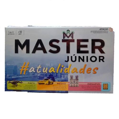 Com o Master Júnior Atualidades, as crianças deverão mostrar que estão ligadas em tudo o que acontece nos programas de TV, filmes, músicas e novas tecnologias. São 1.395 perguntas para a criançada aprender e, ao mesmo tempo, se divertir muito Neste jogo, existem 3 níveis de dificuldade: fácil, médio e desafio. Basicamente, a criança irá avançar quando acertar a resposta, e perderá uma vida se errar. No momento em que a criança acertar 6 perguntas fáceis, ela passa para o nível médio. Neste nível, será preciso acertar 3 perguntas para chegar no nível desafio. Existem duas formas de ganhar a partida. A primeira é acertando a pergunta desafio. A segunda, é no caso de as fichas de vida acabarem; neste caso, o jogador que estiver mais avançado no tabuleiro será o grande vencedor.
