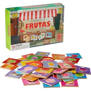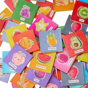 Cartas: O jogo contém 40 cartas coloridas e ilustradas, divididas em 20 pares, cada um apresentando uma fruta diferente.