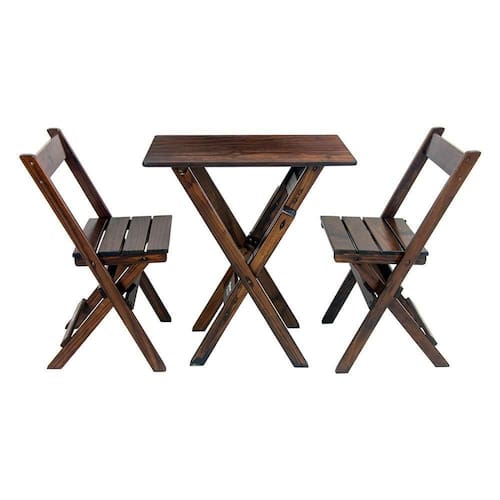 AS IMAGENS SÃO MERAMENTE ILUSTRATIVAS E PODEM SOFRER VARIAÇÕES DE COR E PEQUENOS DETALHES DE ACORDO COM O SEU MONITOR, ILUMINAÇÃO DO AMBIENTE E ATÉ MESMO A SUA PERCEPÇÃO VISUAL.Jogo Mesa Aparador Bar DobrÃvel com 2 Cadeiras em Madeira MaciÃa - Imbuia