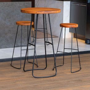 Apresentamos o Jogo Mesa Bistrô 2 Banquetas Alta Bar Cozinha Balcão, um conjunto exclusivo que combina a elegância da Mesa Bistrô Aurora com a praticidade das Banquetas Altas Aurora. Com tampo em madeira maciça de Peroba Rosa, estrutura resistente em aço carbono, e design inspirado nas últimas tendências europeias, este kit proporciona charme e funcionalidade para sua cozinha, bar ou balcão. As banquetas, com assentos em madeira maciça e estrutura robusta, completam o conjunto, oferecendo um ambiente moderno e aconchegante.