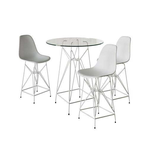 Jogo Mesa Bistrô Eames Vidro 60cm 3 Banquetas Branca Base Ferro BrancoO Jogo de Mesa e Banqueta Bistrô Eames possui um design moderno cheio de charme, fabricado com material de alta qualidade, proporcionando o melhor conforto e sem perder o estilo. A banqueta possui uma curvatura ergonômica que se encaixa perfeitamente ao corpo, ficando ainda mais completo com a mesa.Tipo: ConjuntoModelo: Eames BistrôCor Tampo da Mesa: VidroCor Assento da Banqueta: BrancaCor da Base: BrancoCARACTERÍSTICASBase: FerroTampo da Mesa: VidroAssento: Plástico polipropilenoDIMENSÕES DA BANQUETAAltura: 101,5cmAltura assento até o chão: 70,5cmLargura: 40cmComprimento: 40cmDIMENSÕES DA MESAAltura: 100cmDiâmetro: 60cmLargura base: 40cmComprimento base: 40cmIMAGENS MERAMENTE ILUSTRATIVAS, PODENDO HAVER UMA PEQUENA VARIAÇÃO NA COR DEPENDENDO DE CADA TELA OU MONITOR.