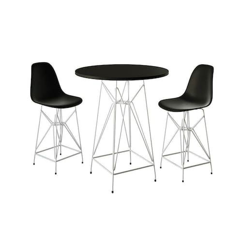 Jogo Mesa Bistrô Eames Preta 60cm 2 Banquetas Preta Base Ferro BrancoO Jogo de Mesa e Banqueta Bistrô Eames possui um design moderno cheio de charme, fabricado com material de alta qualidade, proporcionando o melhor conforto e sem perder o estilo. A banqueta possui uma curvatura ergonômica que se encaixa perfeitamente ao corpo, ficando ainda mais completo com a mesa.Tipo: ConjuntoModelo: Eames BistrôCor Tampo da Mesa: PretoCor Assento da Banqueta: PretoCor da Base: BrancoCARACTERÍSTICASBase: FerroTampo da Mesa: MDFAssento: Plástico polipropilenoDIMENSÕES DA BANQUETAAltura: 101,5cmAltura assento até o chão: 70,5cmLargura: 40cmComprimento: 40cmDIMENSÕES DA MESAAltura: 100cmDiâmetro: 60cmLargura base: 40cmComprimento base: 40cmIMAGENS MERAMENTE ILUSTRATIVAS, PODENDO HAVER UMA PEQUENA VARIAÇÃO NA COR DEPENDENDO DE CADA TELA OU MONITOR.Jogo Mesa Bistrà Eames Preta 60cm 2 Banquetas Preta Base Ferro Branco