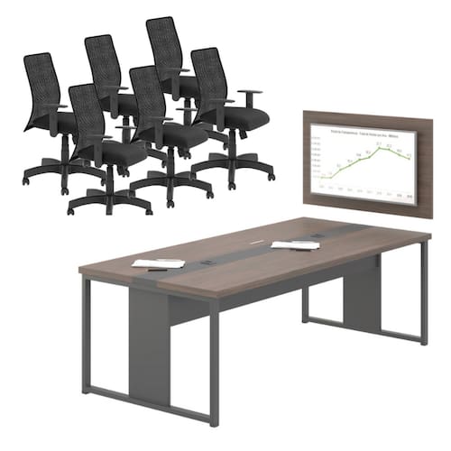 Com esse Conjunto de Mesa com Painel e Cadeiras, seu ambiente ficará mais prático e elegante.