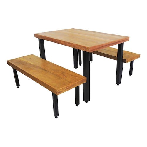 O JOGO MESA E 2 BANCOS INDUSTRIAL DALLAS possui tampo e assentos em MADEIRA MACIÇA e BASE METÁLICA com pintura Epóxi Eletrostática que garante durabilidade e acabamento diferenciado ao produto, dando ar de modernidade e sofisticação à sua casa.