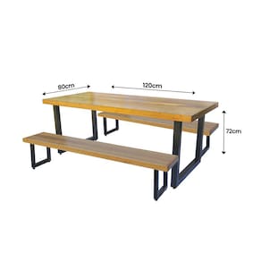 JOGO MESA E 2 BANCOS INDUSTRIAL DETROIT 1,20M FERRAGEM PRETA