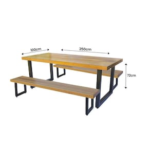 Jogo Mesa E 2 Bancos Industrial Detroit 2,50m Ferragem Preta - Preto