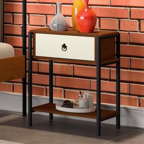 Jogo Mesinhas De Cabeceira Iron Vintage Preto Canela Off White Conjunto Mesas de Cabeceira Industrial Magali Preto Canela Off White