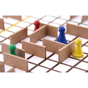 Um jogo divertido e empolgante onde os jogadores devem cruzar todo o tabuleiro contornando os bloqueios que os adversários forem colocando no caminho. Versão menor do Jogo Bloqueio - Mitra.