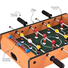 Especificações: Referência: BR2072 Marca: Multikids Modelo: Mini Futebol de Mesa Material: Madeira/Plástico Recomendação: Para crianças a partir de +06 anos Restrição de Idade: Não recomendável para menores de 03 anos por conter peças pequenas que podem ser engolidas