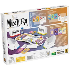 Mixtura é um jogo diferente que faz a gente pensar e se divertir montando ou decifrando as palavras.Estimula o pensamento abstrato, a imaginação, a memória e aumenta o repertório de palavras.É possível adequar a partida para crianças menores, usando apenas plavras com 2 ou 3 sílabas.Mas, àmedida que os jogadores vão ficando craques, é hora de formar palavras maiores e ganhar mais pontos A partir de 8 anos2 ou mais participantes