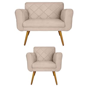 Jogo Namoradeira e 1 Poltrona Estofada Salão de Beleza Isabella Corano Bege - LM DECOR