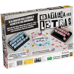 Jogo Batalha das Letras GrowVocê é capaz de formar várias palavras com as letras do seu oponente em pouco tempo? Descubra jogandoBatalha das LetrasBatalha das Letrasda Grow!Esse jogo de tabuleiro vai desafiar seu intelecto das mais diversas formas e promete ser a diversão ideal entre adultos e crianças!Seja criativo e rápido o bastante para conseguir derrotar seu adversário antes que ele forme mais palavras do que você!O jogo Batalha das Letras é ideal para 2 participantes a partir dos 7 anos!Para brincar com esse jogo de palavras, basta vocês escolherem um tema. Ele pode ser qualquer um: frutas, carros, flores, cores e muito mais.Depois, role o dado e diga a melhor palavra sobre esse tema que você conseguiu pensar. Assim, você consegue derrubar mais letras do exército do seu adversário!Não entendeu? Aqui vai um exemplo: suponha que o tema escolhido éFLORES , e a letra sorteada é M. Neste caso, você pode falar MARGARIDA. A partir daí, as letras M, A, R, G, A, R, I, D e A do seu adversário são derrubadas.Todas as regras do jogo Batalha das Letras estão incluídas junto com o manual do jogo. Basta encontrar suas companhias, seguir as regras e partir para a diversão!Idade: A partir de 7 anosParticipantes: 2Tabuleiro, peões, dado, conjuntos de letras, base para letras e manual de instrução.Faixa Etária A partir de 7 anosComponentes Tabuleiro, peões, dado, conjuntos de letras, base para letras e manual de instrução.Dimensões da embalagem 27,1 x 37,6 x 5,5 cmParticipantes 2