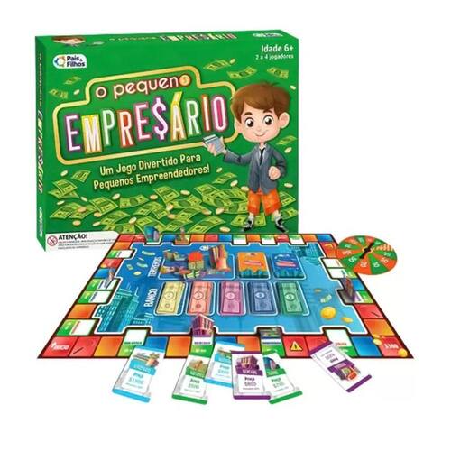 Pequeno Empresário, cada jogador escolhe a cor que irá usar. Divide-se o dinheiro em partes iguais. O peão deverá cair sempre na casa de sua própria cor, se cair em outra cor que não seja a sua, o jogador terá que girar a roleta para saber qual o valor do aluguel a ser pago ao dono da casa. Um jogo divertido que prepara desde cedo novos empreendedores.