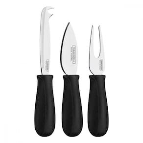 Jogo Para Queijos Tramontina Harmoniza Com Lâminas Em Aço Inox E Cabos De Polipropileno Preto 3 Peças As lâminas de aço inox têm maior durabilidade do fio devido ao tratamento térmico. Os cabos de polipropileno possuem maior resistência e durabilidade. Podem ir à máquina de lavar louças facilitando seu dia a dia. Cor: Única