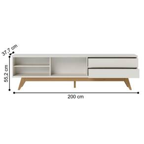 Feito em MDP/MDF 25/15mm. Contém 1 porta deslizante, 2 gavetas com corrediças telescópicas, 1 prateleira e 2 nichos para facilitação da organização de objetos decorativos e eletrônicos.