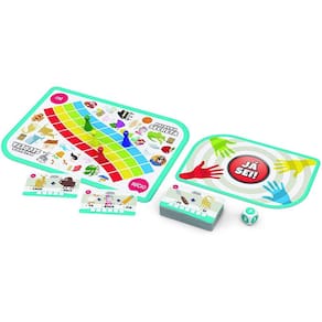 Contém: 1 tabuleiro, 1 alvo, 66 cartas, 4 peões, 1 dado, 1 conjunto de adesivos para o dado e 1 folheto de regra