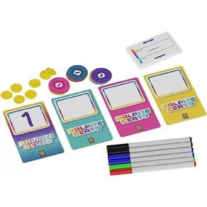 Jogo Palpite Certo - Grow Palpite Certo é um jogo de perguntas e respostas diferente dos demais! Você não precisa saber as respostas exatas para vencer. O importante é apostar no palpite mais próximo! Todas as respostas serão NÚMEROS e QUANTIDADES! Caso ache que o palpite de outro jogador foi o melhor, você pode apostar nele também! É bem simples: alguém lê uma pergunta da carta e todos escrevem suas respostas em cartelas. Essas cartelas são apresentadas a todos os jogadores. Então é hora de apostar! Qual é o palpite mais certo? Sentindo-se confiante? Aposte em si mesmo. Acredita que o palpite de outro jogador é melhor? Aposte no dele. Não faz a menor ideia? Conte com sua sorte e aposte em qualquer palpite! Selo Inmetro: CE-BRI/ICEPEX-N 01264-25 Ean: 7908010143584