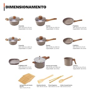 Distribuído por feheros shop Jogo de panelas premium 17 peças 4mm indução revestimento cerâmico antiaderente Atenção As panelas com revestimento cerâmico possuem propriedades antiaderentes, o que significa que ajudam a evitar que os alimentos grudem durante o cozimento. No entanto, elas não são 100% antiaderentes. - certificação inmetro nível a - evite que a chama do fogão atinja as laterais das panelas - leia atentamente a descrição e siga as recomendações do fabricante Informações do produto - versatilidade incrível, projetado para funcionar em todas as fontes de calor, incluindo indução, para você cozinhar com confiança e alto desempenho - cozinha saudável, com cerâmica livre de pfoa e ptfe, permitindo usar menos óleo e mantendo o sabor natural dos alimentos - economia de tempo e energia, aquecimento rápido e distribuição de calor uniforme, reduzindo o tempo de cozimento e o consumo de energia - conjunto cozinha completa, agora com 17 peças essenciais para preparar de receitas simples às mais elaboradas Especificações técnicas do produto - pode ser em todos os tipos de fogões existentes no mercado, a gás, elétricos, vitrocerâmicos e de indução - revestimento cerâmico em 3 camadas, com 4 mm de espessura - cabo em baquelite com revestimento soft touch, super macio ao toque, confortável de segurar e que ajuda a evitar queimaduras - revestimento cerâmico antiaderente, não gruda nos alimentos e permite usar menos óleo - composição de 3 camadas, sendo 2 de revestimento cerâmico e 1 camada especial resistente a alta temperatura Ficha técnica do produto: - caçarola 18 m : 18 cm x 8,5 cm - 1700 ml - caçarola 22 g : 22 cm x 10 cm - 3200 ml - panela 16 p : 16 cm x 8,5 cm - 1300 ml - panela 18 m : 18 cm x 8,5 cm - 1700 ml - frigideira 16 p : 16 cm x 4 cm - 600 ml - frigideira 22 m : 22 cm x 4,7 cm - 1450 ml - grill 24 g : 24 cm x 4 cm - 1500 ml - leiteira 14: 14 cm x 12 cm - 1800 ml - panela 4,2 l: 20 cm x 14,5 cm - 4200 ml - espátula vazada em bambu: 30 x 6 x 1 cm - colher vazada em bambu: 30 x 6 x 1 cm - descansos de panela quadrados em bambu: 17 x 17 cm - pinça pegador em bambu: 36 x 8 x 2 cm Antes do primeiro uso cura do produto - lave com esponja macia e detergente líquido - seque bem, com pano seco - aplique fina camada de óleo vegetal na parte interna - leve ao fogo baixo por 2 minutos - deixe esfriar, lave novamente e seque antes de usar Após o uso - evite choques térmicos, e aguarde esfriar antes de lavar - lave manualmente, com água morna, sabão neutro e esponja macia - para remover resíduos, deixe de molho em água por alguns minutos - não use produtos ou esponjas abrasivas - não é indicado o uso em lava louças, para preservar o revestimento cerâmico Itens inclusos no pacote - 01 caçarola 18 cm revestimento cerâmico 1,7 l tampa de vidro temperado - 01 caçarola 22 cm revestimento cerâmico 3,2 l tampa de vidro temperado - 01 panela 16 cm revestimento cerâmico 1,3 l tampa de vidro temperado - 01 panela 18 cm revestimento cerâmico 1,7 l tampa de vidro temperado - 01 frigideira 16 cm revestimento cerâmico 0,6 l - 01 frigideira 22 cm revestimento cerâmico 1,45 l - 01 grill 24 cm revestimento cerâmico 1,5 l - 01 leiteira 14 cm revestimento cerâmico 1,8 l - 01 panela revestimento cerâmico 4,2 l - 01 espátula vazada bambu - 01 colher vazada bambu - 01 pinça pegador de carnes bambu - 05 descansos de panela quadrados bambu Todas as fotos são reais dos produtos. Qualquer dúvida, estamos à disposição Dúvidas frequentes 01 - os produtos são novos Possuem R: sim, são novos e contam com 3 meses de do fabricante 03 - como faço para acompanhar o envio R: após a compra, você receberá um código de rastreamento para acompanhar todo o processo de entrega