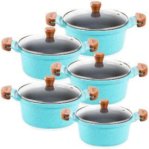 01 Jogo Panela Azul Turquesa Antiaderente Cerâmica Javali AM 16 a 24cm.