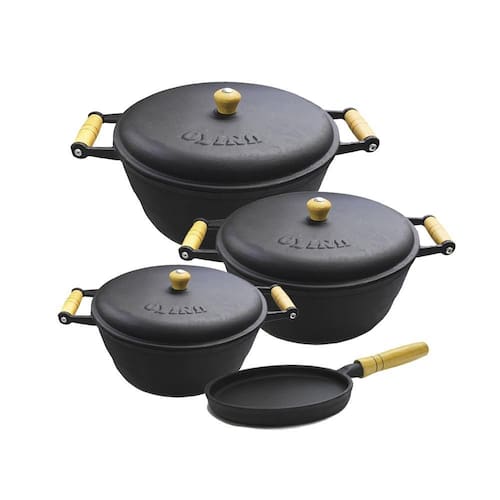 Jogo Panela Ferro Alça de Madeira com Tampa e Frigideira Nº11
