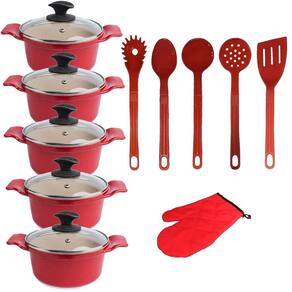 Jogo Panela Vermelha Marmorizada Talher Javali AAL 16A24Cm
