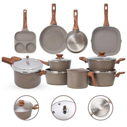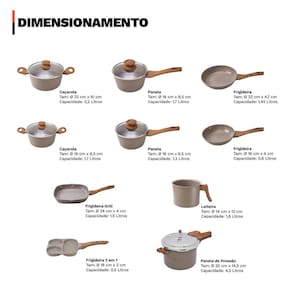 Distribuído por feheros shop Jogo de panelas 10 peças premium 4mm indução revestimento cerâmico antiaderente Atenção As panelas com revestimento cerâmico possuem propriedades antiaderentes que ajudam a evitar que os alimentos grudem, mas não são 100% antiaderentes e podem exigir pequena quantidade de óleo para melhor desempenho. - produto certificado pelo inmetro nível a . - evite que a chama do fogão atinja as laterais da panela. - não deixe o produto superaquecer vazio. Informações do produto O jogo de panelas 10 peças é pensado para quem cozinha diariamente e busca praticidade, reunindo corpo em alumínio de 4 mm e revestimento cerâmico antiaderente que evita que os alimentos grudem, facilita a limpeza e permite usar menos óleo. Compatível com fogões a gás, elétricos, vitrocerâmicos e por indução, enquanto o fundo triplo de indução distribui o calor de forma uniforme e aquece rapidamente, reduzindo o tempo de preparo e economizando energia. Para completar, a panela 4,2 l possui fundo compatível com indução e sistema de segurança composto por regulador , válvula flutuante, duas válvulas adicionais, anel de vedação e tampa à prova de bloqueio, trazendo confiabilidade ao uso diário Especificações técnicas do produto - compatível com fogões a gás, elétricos, vitrocerâmicos e por indução, oferecendo versatilidade para diferentes cozinhas - revestimento cerâmico antiaderente livre de pfoa, que preserva o sabor dos alimentos e permite cozinhar com menos óleo - cabo de baquelite com revestimento soft touch macio, que não esquenta e garante conforto e segurança no manuseio - panela com sistema de segurança completo com regulador , duas válvulas de segurança adicionais, válvula flutuante, anel de vedação e tampa à prova de bloqueio Ficha técnica do produto - caçarola 18 cm 18 x 8,5 cm 1,7 l - caçarola 22 cm 22 x 10 cm 3,2 l - panela 16 cm 16 x 8,5 cm 1,3 l - panela 18 cm 18 x 8,5 cm 1,7 l - frigideira 16 cm 16 x 4 cm 0,6 l - frigideira 22 cm 22 x 4,7 cm - grill 24 cm 24 x 4 cm 1,5 l - leiteira 14 cm 14 x 12 cm 1,8 l - frigideira grill 3 em 1 18 x 18 cm - panela 4,2 l 20 - altura sem tampa 14,5 cm - comprimento total 41,5 cm Antes do primeiro uso - lave com esponja macia e detergente - seque bem - aplique fina camada de óleo na parte interna - leve ao fogo baixo por 2 minutos - deixe esfriar, lave novamente e seque - na panela , unte levemente a borda do corpo e o anel de vedação, coloque água até a metade, feche, aqueça até liberar vapor por 2 minutos, deixe esfriar, lave e seque Após o uso - aguarde esfriar antes de lavar - lave manualmente com água, sabão e esponja - para remover resíduos, deixe de molho em água por alguns minutos - não use produtos ou esponjas abrasivas - não é indicado o uso em lava-louças, para preservar o revestimento cerâmico Itens inclusos no pacote - 01 caçarola 18 cm revestimento cerâmico 1,7 l com tampa - 01 caçarola 22 cm revestimento cerâmico 3,2 l com tampa - 01 panela 16 cm revestimento cerâmico 1,3 l com tampa - 01 panela 18 cm revestimento cerâmico 1,7 l com tampa - 01 frigideira 16 cm revestimento cerâmico 0,6 l - 01 frigideira 22 cm revestimento cerâmico 1,45 l - 01 grill 24 cm revestimento cerâmico 1,5 l - 01 leiteira 14 cm revestimento cerâmico 1,8 l - 01 panela 4,2 l revestimento cerâmico - 01 frigideira grill 3 em 1 revestimento cerâmico Todas as fotos são reais dos produtos. Qualquer dúvida, estamos à disposição Dúvidas frequentes 01 - os produtos são novos Possuem R: sim. São novos e contam com 3 meses de do fabricante. 03 - como faço para acompanhar o envio R: após a compra, você receberá um código de rastreamento para acompanhar todo o processo de entrega.