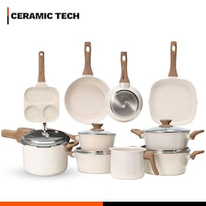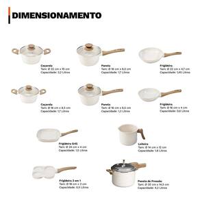 Distribuído por feheros shop Jogo de panelas 10 peças premium 4mm indução revestimento cerâmico antiaderente Atenção As panelas com revestimento cerâmico possuem propriedades antiaderentes que ajudam a evitar que os alimentos grudem, mas não são 100% antiaderentes e podem exigir pequena quantidade de óleo para melhor desempenho. - produto certificado pelo inmetro nível a . - evite que a chama do fogão atinja as laterais da panela. - não deixe o produto superaquecer vazio. Informações do produto O jogo de panelas 10 peças é pensado para quem cozinha diariamente e busca praticidade, reunindo corpo em alumínio de 4 mm e revestimento cerâmico antiaderente que evita que os alimentos grudem, facilita a limpeza e permite usar menos óleo. Compatível com fogões a gás, elétricos, vitrocerâmicos e por indução, enquanto o fundo triplo de indução distribui o calor de forma uniforme e aquece rapidamente, reduzindo o tempo de preparo e economizando energia. Para completar, a panela 4,2 l possui fundo compatível com indução e sistema de segurança composto por regulador , válvula flutuante, duas válvulas adicionais, anel de vedação e tampa à prova de bloqueio, trazendo confiabilidade ao uso diário Especificações técnicas do produto - compatível com fogões a gás, elétricos, vitrocerâmicos e por indução, oferecendo versatilidade para diferentes cozinhas - revestimento cerâmico antiaderente livre de pfoa, que preserva o sabor dos alimentos e permite cozinhar com menos óleo - cabo de baquelite com revestimento soft touch macio, que não esquenta e garante conforto e segurança no manuseio - panela com sistema de segurança completo com regulador , duas válvulas de segurança adicionais, válvula flutuante, anel de vedação e tampa à prova de bloqueio Ficha técnica do produto - caçarola 18 cm 18 x 8,5 cm 1,7 l - caçarola 22 cm 22 x 10 cm 3,2 l - panela 16 cm 16 x 8,5 cm 1,3 l - panela 18 cm 18 x 8,5 cm 1,7 l - frigideira 16 cm 16 x 4 cm 0,6 l - frigideira 22 cm 22 x 4,7 cm - grill 24 cm 24 x 4 cm 1,5 l - leiteira 14 cm 14 x 12 cm 1,8 l - frigideira grill 3 em 1 18 x 18 cm - panela 4,2 l 20 - altura sem tampa 14,5 cm - comprimento total 41,5 cm Antes do primeiro uso - lave com esponja macia e detergente - seque bem - aplique fina camada de óleo na parte interna - leve ao fogo baixo por 2 minutos - deixe esfriar, lave novamente e seque - na panela , unte levemente a borda do corpo e o anel de vedação, coloque água até a metade, feche, aqueça até liberar vapor por 2 minutos, deixe esfriar, lave e seque Após o uso - aguarde esfriar antes de lavar - lave manualmente com água, sabão e esponja - para remover resíduos, deixe de molho em água por alguns minutos - não use produtos ou esponjas abrasivas - não é indicado o uso em lava-louças, para preservar o revestimento cerâmico Itens inclusos no pacote - 01 caçarola 18 cm revestimento cerâmico 1,7 l com tampa - 01 caçarola 22 cm revestimento cerâmico 3,2 l com tampa - 01 panela 16 cm revestimento cerâmico 1,3 l com tampa - 01 panela 18 cm revestimento cerâmico 1,7 l com tampa - 01 frigideira 16 cm revestimento cerâmico 0,6 l - 01 frigideira 22 cm revestimento cerâmico 1,45 l - 01 grill 24 cm revestimento cerâmico 1,5 l - 01 leiteira 14 cm revestimento cerâmico 1,8 l - 01 panela 4,2 l revestimento cerâmico - 01 frigideira grill 3 em 1 revestimento cerâmico Todas as fotos são reais dos produtos. Qualquer dúvida, estamos à disposição Dúvidas frequentes 01 - os produtos são novos Possuem R: sim. São novos e contam com 3 meses de do fabricante. 03 - como faço para acompanhar o envio R: após a compra, você receberá um código de rastreamento para acompanhar todo o processo de entrega.