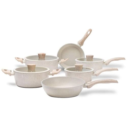 Diferenciais: o jogo panelas 6 peças com indução da linha ceramic life sirius/brinox na cor vanilla tem estrutura de alumínio que distribui o calor de forma homogênea.