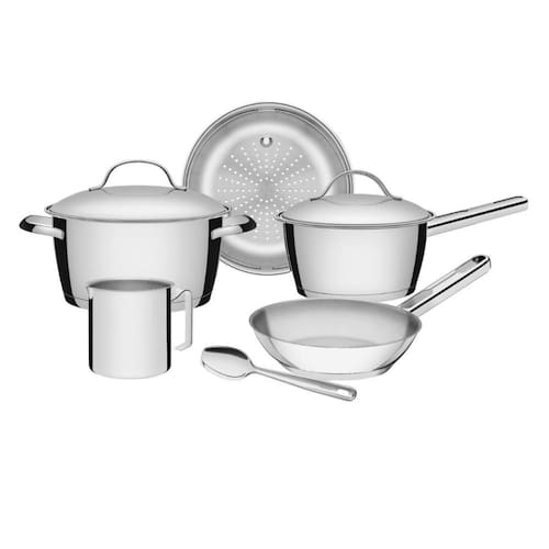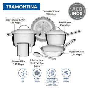 Jogo Panelas Allegra Aço Inox 6 Peças com Fervedor e Colher Tramontina
