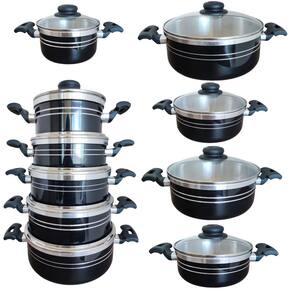 Jogo de panelas aluminio grosso com tampa de vidro temperado luxuosa 5pçs Cor: preta lisa Jogo de panelas aluminio com tampa de vidro temperado sublime luxxo: transforme sua cozinha com elegância e durabilidade - design sofisticado - jogo de panelas padrão luxxo, resistentes e de super bom gosto para uma cozinha charmosa. - feitas em alumínio extra forte com 2,5mm de espessura. Detalhes que encantam: - tampa de vidro temperado. - alças seguras com design anatômico. - pegadores antitérmicos de baquelite, resistentes a altas temperaturas. - pintadas em tecnologia eletrostática para preservar a cor por muito mais tempo. - alta durabilidade com alumínio grosso e excelente acabamento. de qualidade - não gruda, -não entorta, -não amassa, -não enferruja. - conjunto com 5 panelas com ótimos tamanhos. - excelente espaço interior, grandes e altas. medidas das panelas: - 16 x 10 cm - 1,9 litros. - 18 x 08 cm - 2,0 litros. - 20 x 08 cm -2,4 litros. - 22 x 10 cm - 3,5 litros. - 24 x 11 cm - 4,6 litros. - excelente acabamento interno e externo. fotos reais das panelas: - imagens reais garantindo transparência sobre o produto que irá receber. toque de requinte e sofisticação: Marca: Não Informado