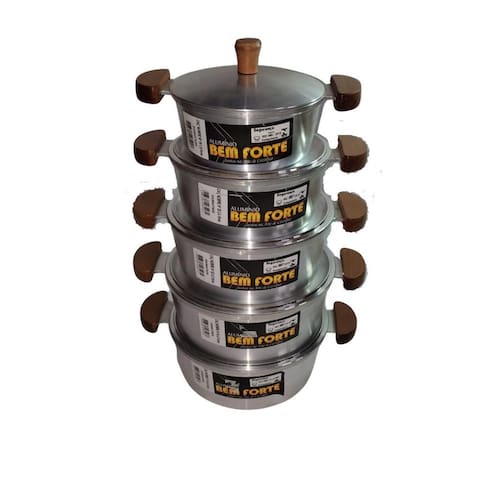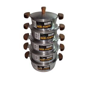 Jogo de panelas bem forte alumínio fundido 5 peças tampa pesada Feitas em alumínio fundido com um super acabamento polido que permite o aquecimento mais rápido e também conserva o calor por mais tempo, esse conjunto de panelas pode ser em fogão convencional, industrial e a lenha. Composto por 5 peças em alumínio fundido garantindo durabilidade e vantagens na hora de cozinhar. Contém: 1 caçarola 16x08 cm - 1,3 litro 1 caçarola 18x08 cm - 1,8 litros 1 caçarola 20x09 cm - 2,4 litros 1 caçarola 22x10 cm - 3,2 litros 1 caçarola 24x10 cm - 4,0 litros Medidas da caixa Altura :29cm Comprimento :30cm Largura :35cm Peso liquido : 5kg Peso bruto : 7kg Todas com cabo e puxadores em madeira proporcionando maior segurança no manuseio. de 3 meses do fabricante Produto certificado pelo inmetro. Marca: Não Informado