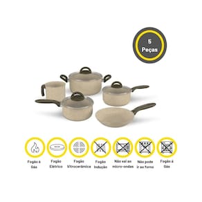 As panelas contam com revestimento Pro Ceramic Premium antiaderente Mineral Resist, o que torna o preparo de pratos mais saudável, pois cozinha com menos óleo, e a limpeza mais prática. A colher e a espátula em silicone não são abrasivas, suportam altas temperaturas e impedem o acúmulo de bactérias.