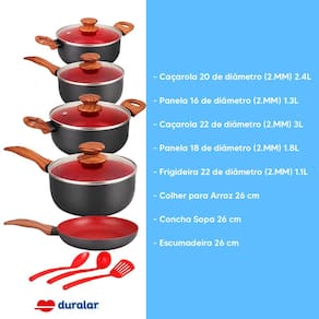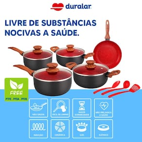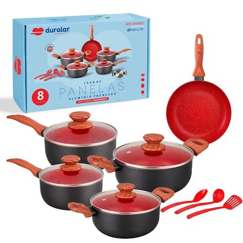 Leve tecnologia, desempenho e sofisticação para sua cozinha com o Jogo de Panelas Duralar Red Marble de 8 peças.