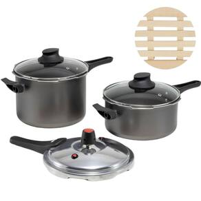 Jogo de Panelas 2 em 1 Fechamento Externo e Tampa de Vidro Marcolar A Panela Antiaderente com Fechamento Externo da Marcolar é a solução ideal para quem busca praticidade na cozinha, permitindo preparar refeições saborosas de maneira rápida e eficiente. Essa panela oferece conveniência incomparável. Com duas opções de tampas, você pode cozinhar com a tampa e, logo em seguida, trocar para a tampa de vidro e levar a panela diretamente à mesa. Economize tempo e reduza o número de louças a serem lavadas, sem abrir mão de um design sofisticado. Além disso, o fechamento externo proporciona maior segurança e facilidade no manuseio, enquanto as tampas de vidro temperado com saída de vapor asseguram um cozimento uniforme. DIFERENCIAIS - Fechamento Externo: Mais seguro e fácil de manusear, oferecendo um uso prático no dia a dia. - Revestimento Antiaderente: Evita que os alimentos grudem, facilitando tanto o preparo quanto a limpeza. - Tampas de Vidro: Duas tampas com saída de vapor para servir diretamente à mesa sem perder o calor dos alimentos. ESPECIFICAÇÕES TÉCNICAS Material: Alumínio Cor: Preto Compatibilidade: Ideal para fogões a gás ITENS INCLUSOS 01 Panela 4,5L 01 Panela 3L 02 Tampas de Vidro 02 Descansos de Panela Leve a praticidade e qualidade Marcolar para sua cozinha e transforme suas refeições Marca: Não Informado