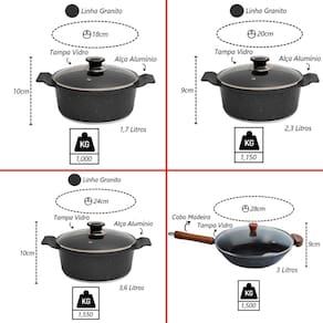 Jogo Panelas Granito AA 18 20 24 e Frigideira 24cm Javali