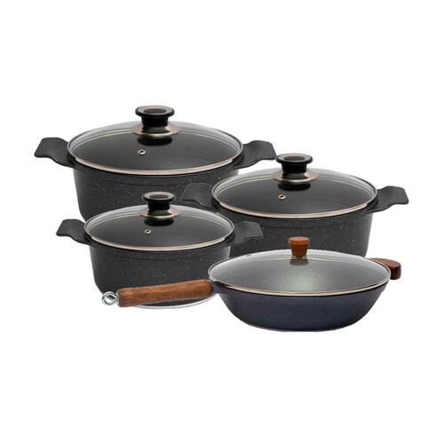 Jogo Panelas Granito AA 18 20 24 e Frigideira 24cm Javali As caçarolas e frigideiras antiaderente, também conhecidas como teflon, são revestidas com uma substância capaz de repelir certas substâncias. Por isso, a comida não gruda nela. É resistente a altas temperaturas e a arranhões. As caçarolas e frigideiras em alumínio antiaderente contam com uma camada que cobre o seu material e evita que o alimento grude em seu interior. Dessa forma, contribuem para uma culinária saudável, dispensando o uso excessivo de gordura ou óleos vegetais. Para quem gosta de um peixe ou filé de frango grelhado, ou não dispensa uma omelete delicioso, não pode deixar de ter uma em sua cozinha. Manutenção e Dicas:1. Evite grandes mudanças de temperatura. (Levar uma frigideira quente para a água fria pode fazer com que a frigideira deforme.)2. Limpe suas frigideiras antiaderentes com esponjas que não causem riscos.3. Use detergentes mais suaves para limpar suas frigideiras antiaderentes.4. Não use metal na sua frigideira antiaderente.5. Não é ideal para máquina lava louças.6. Evite altas temperaturas de cozimento.7. Não deixe a frigideira vazia no fogo. Especificações Técnicas:Revestimento Externo: Antiaderente Marmorizado Granito.Revestimento Interno: Antiaderente Marmorizado Granito.Caçarolas: Alça de Alumínio e Tampa de Vidro.Frigideira: Cabo em Baquelite Sem Tampa. Medidas Caçarolas:Litragem: 1,7L.Largura: 18cm.Altura: 10cm.Peso: 1Kg. Litragem: 2,3L.Largura: 20cm.Peso: 1,15Kg.Altura: 9cm Litragem: 3,6L.Largura: 24cm.Peso: 1,550Kg.Altura: 10cm. Medidas Frigideira:Litragem: 1,750ml.Largura: 24cm.Peso: 1,300Kg.Altura: 7cm. Itens Inclusos:01 Jogo Panelas Granito AA 18,20,24 e Frigideira 24cm Gourmet Javali. Código: 2168JAVProdutoLojaPlast.