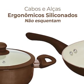 Jogo Panelas Induçao Revestimento Cerâmica Roma Marrom Plus