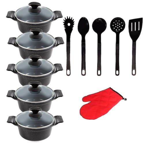 Jogo Panelas Preto Liso Cerâmica Talher Javali AAL 16 A 24Cm