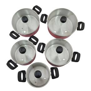 Jogo Panelas Tampa Vidro Alumínio Batido Vermelho Craqueado