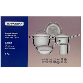 Jogo panelas tramontina allegra aço inox fundo triplo 5pçs Cor: aço inox O jogo de panelas tramontina 5 peças da linha allegra vai virar seu melhor amigo na cozinha. São projetadas para facilitar a preparação das mais variadas receitas. Elas são produzidas em aço inox e trazem a alta durabilidade e bom gosto do material.