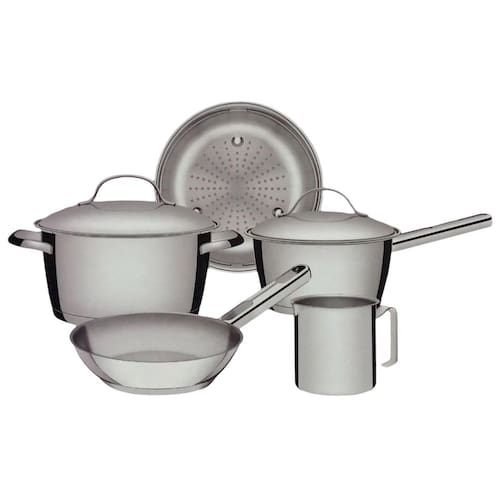 Jogo panelas tramontina allegra aço inox fundo triplo 5pçs Cor: aço inox O jogo de panelas tramontina 5 peças da linha allegra vai virar seu melhor amigo na cozinha. São projetadas para facilitar a preparação das mais variadas receitas. Elas são produzidas em aço inox e trazem a alta durabilidade e bom gosto do material.