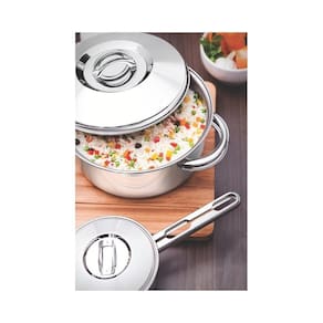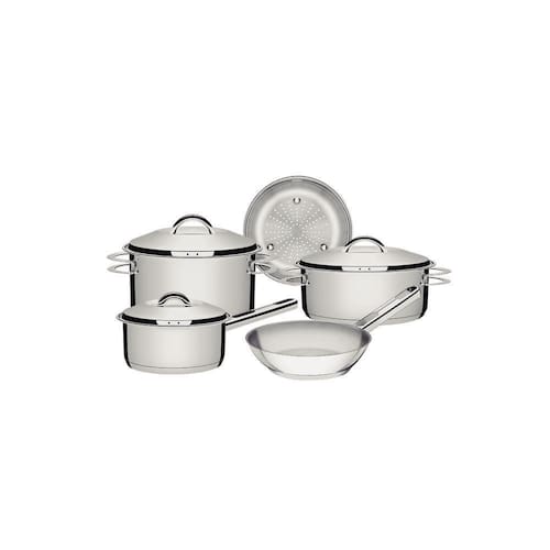 Nada como produtos duráveis e práticos na nossa cozinha. Com o Jogo de Panelas Tramontina Solar em Aço Inox com Fundo Triplo e Tampas de Inox 5 Peças você vai ter peças funcionais perfeitas para auxiliar você nas tarefas do dia a dia. Totalmente produzidas em aço inox, as cinco peças mantém os alimentos saudáveis já que o material não solta resíduos. Trazem ainda a tecnologia de fundo triplo (aço inox + alumínio + aço inox) que distribui o calor uniformemente, proporcionando um cozimento mais rápido e uniforme, economizando energia e deixando os alimentos aquecidos por mais tempo. São peças versáteis que podem ir ao forno para gratinar ou finalizar pratos na temperatura máxima de 260C e ser utilizadas em diferentes tipos de fogões. São fáceis de limpar devido ao desenho sem cantos, além de poderem ir à máquina de lavar louças diariamente. Além disso, levam mais estiloso para dentro da sua cozinha já que apresentam um moderno acabamento em alto brilho. Acompanham tampas com saída de vapor e encaixe perfeito. Garanta uma cozinha completa com esse jogo de panelas clássico da Tramontina!