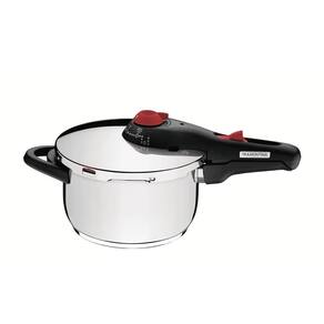 Acompanha panela de pressão, com ela você pode preparar todas as suas receitas com muita tranquilidade. A Panela de Pressão Tramontina em Aço Inox Fundo Triplo 22 cm de diâmetro 4,5 L, contando com 5 dispositivos de segurança que trabalham de forma integrada. Com a Panela de Pressão Tramontina da linha Solar não haverá mais desculpas para não preparar aquele feijão delicioso. Para facilitar ainda mais o uso, ela vem com medidores de capacidade internos, para você não errar na quantidade. O fundo triplo (aço inox + alumínio + aço inox) distribui o calor uniformemente, proporcionando um cozimento mais rápido e uniforme, economizando energia e deixando os alimentos aquecidos por mais tempo.