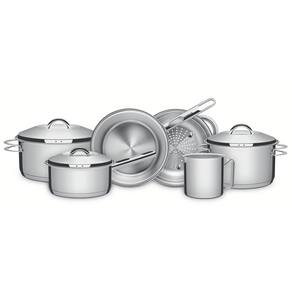O Jogo de Panelas Tramontina Solar em Aço Inox com Fundo Triplo e Tampas de Inox 7 Peças é um clássico Tramontina. Práticas e duráveis, as seis peças são produzidas totalmente em aço inox, que mantém os alimentos saudáveis já que o material não solta resíduos. Possuem fundo triplo (aço inox + alumínio + aço inox), característica que distribui o calor de forma uniforme, proporcionando um cozimento mais rápido e deixando os alimentos aquecidos por mais tempo, além de economizar mais energia. São peças versáteis que podem ir ao forno para gratinar ou finalizar pratos na temperatura máxima de 260C e ser utilizadas em diferentes tipos de fogões. O fervedor não é indicado para o fogão à indução. Possuem tampa com encaixe perfeito e saída de vapor. São ainda muito estilosas. O acabamento em alto brilho faz delas as melhores escolhas para uma cozinha mais bonita. São fáceis de limpar devido ao desenho sem cantos, além de poderem ir à máquina de lavar louças diariamente. A escolha perfeita para ter um cozinha muito mais completa!