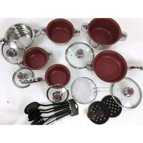 Jogo de panelas vermelha anti-aderente fogão indução 23 pç luxo Jogo de panelas em aço inox com qualidade internacional